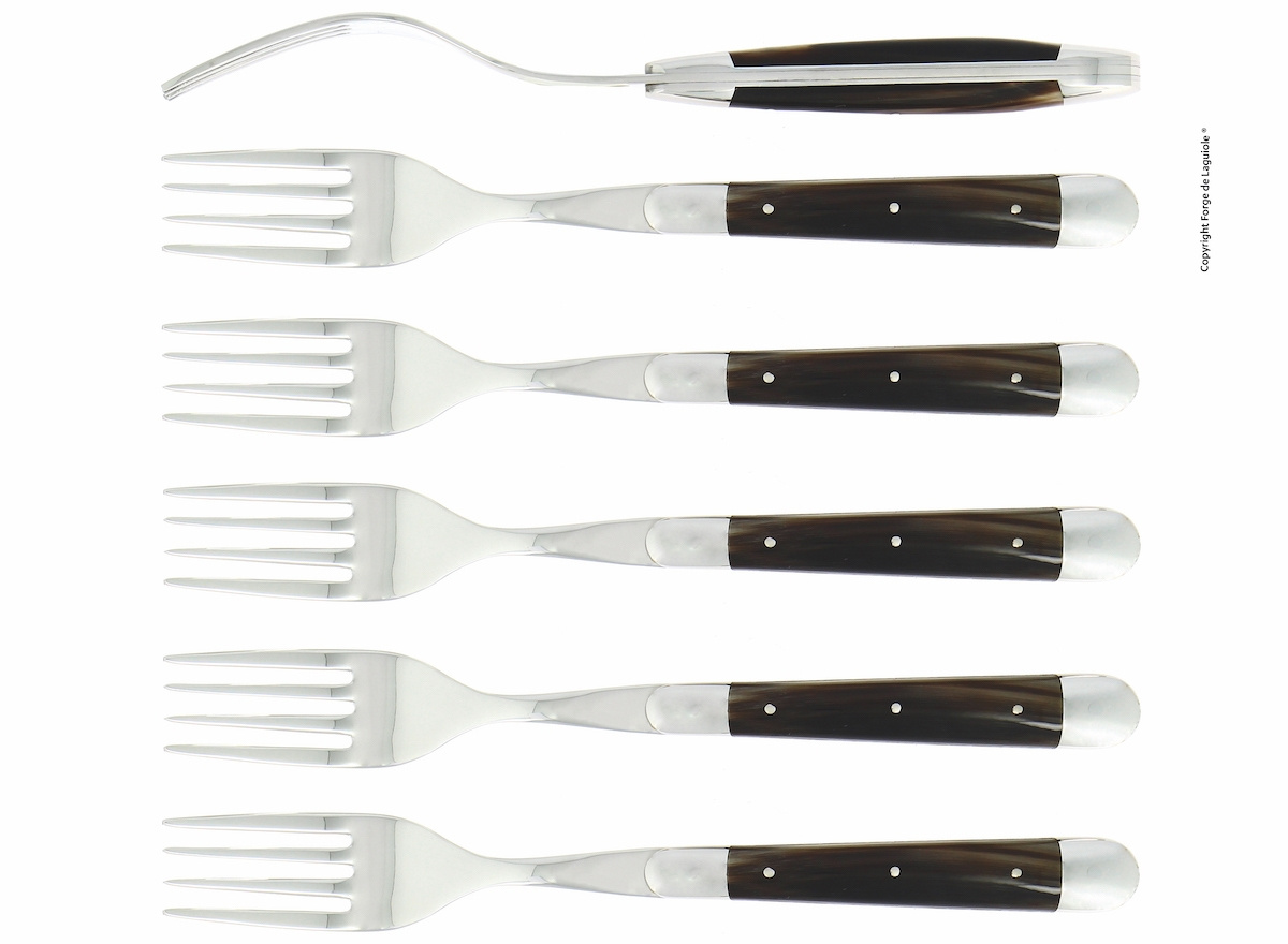 Kuusi haarukkaa, Tumma sarvikahva, kiillotettu, Tradition - Forge de Laguiole