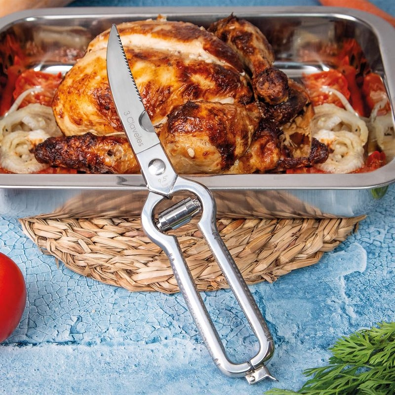 Tämä on siipikarjasakset keittiöihin, joissa kokonainen lintu ei ole romanttinen ajatus vaan jokapäiväistä työtä. 3 Claveles Professional on kuumataottu, mikä tarkoittaa, että teräs muotoillaan korkeassa lämpötilassa massiivisesta aihiosta sen sijaan, että se stansattaisiin levystä. Tulos tuntuu heti kädessä. Rakenne on vääntöjäykkä, nivel vakaa ja vaste välitön. Kun leikkaat rintalastan läpi, erotat reisiluut tai avaat linnun spatchcock valmistusta varten, liikkeessä ei ole mitään pehmeää tai epäröivää. Se puree puhtaasti ja hallitusti.