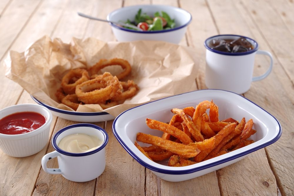 • Emaloitu posliini viestii siitä, ettei tämä ole tavallinen ravintolakeittiö, tavalla johon harvat muut materiaalivalinnat pystyvät. Valkoinen sinisellä reunalla on klassikko, jonka juuret ovat kenttäkeittiöissä, siirtolapuutarhamökeissä, mummon säilykepurkeissa ja yksinkertaisessa kotiruoassa. Se on estetiikka, joka joko sopii täydellisesti tai ei ollenkaan riippuen siitä, mitä olet tekemässä.