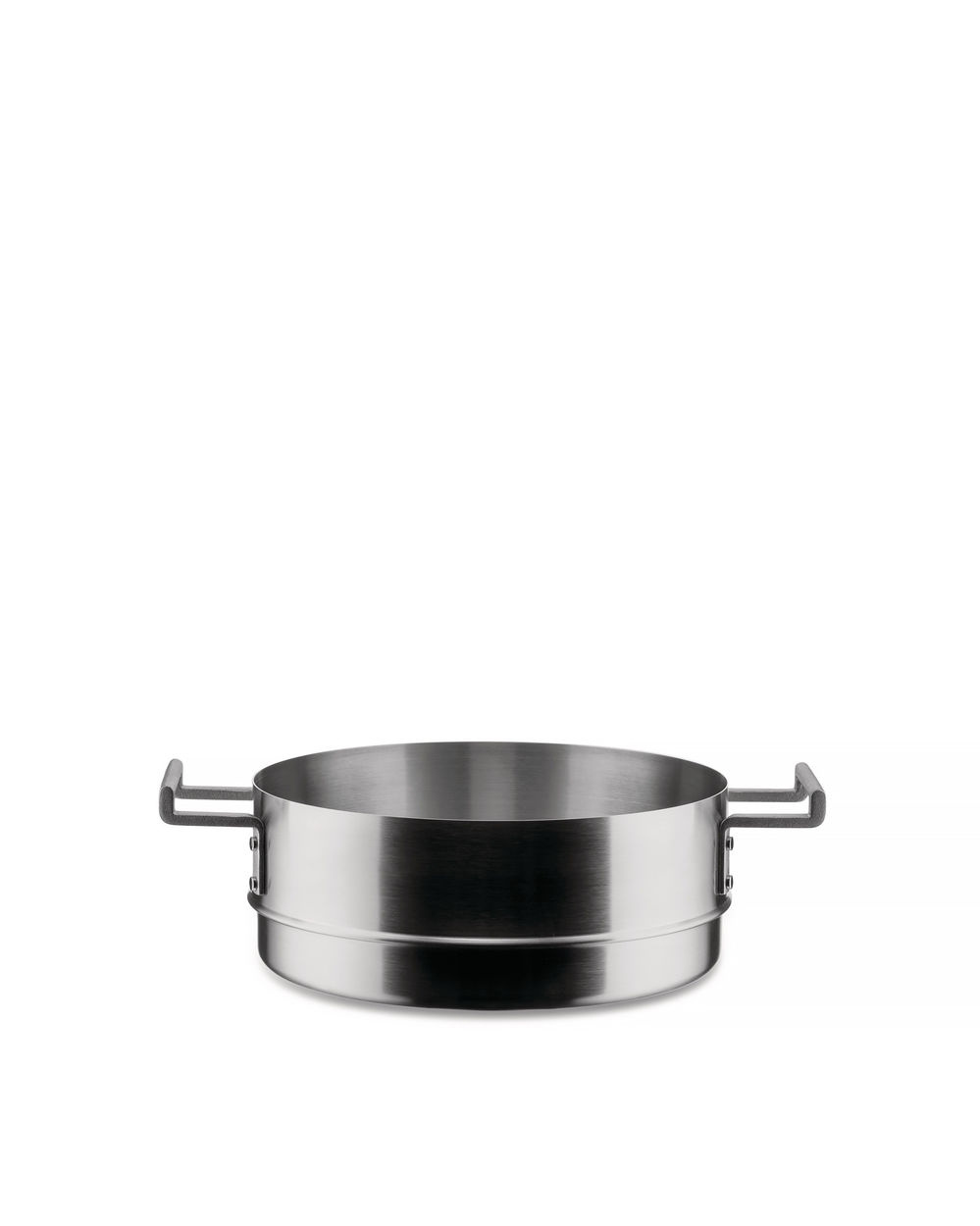 Ruostumattomasta teräksestä valmistettu höyrystin, joka sopii täydellisesti Alessi Convivio -sarjan 24 cm:n kattiloihin. Niille, jotka haluavat höyrystää vihanneksia, nyyttejä tai kalaa tekemättä sitä jossakin vääntyneessä insertissä, jota et edes muista keneltä se on peritty. Tässä saat työkalun, joka tuntuu harkitulta, tasapainoiselta ja täysin linjassa Convivio-sarjan muun muotokielen kanssa. Kahvojen ansiosta se on helppo nostaa sisään ja ulos, ja kiiltävä teräspinta on sekä kestävä että helppo pitää puhtaana. Yksinkertainen yksityiskohta, jolla on suuri merkitys - varsinkin jos haluat kokata tarkasti.