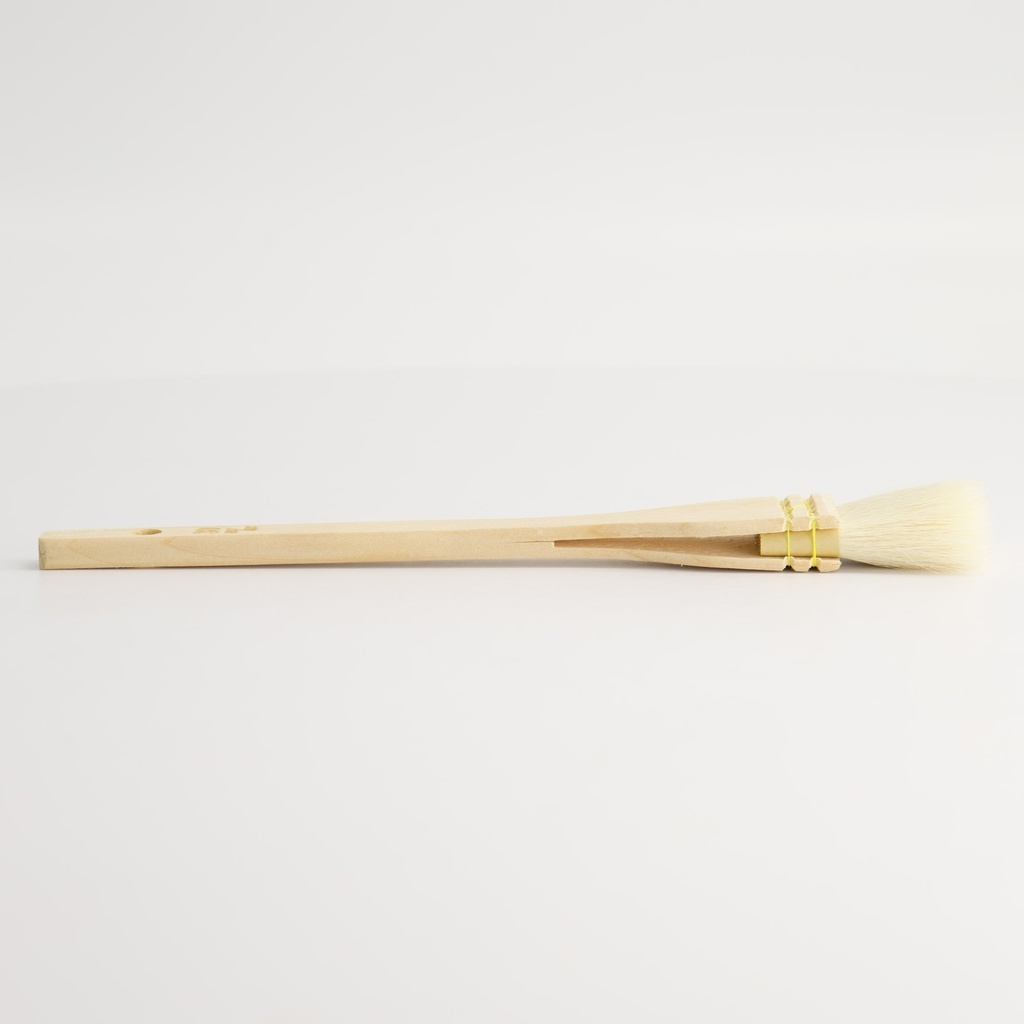 Klassinen japanilainen keittiöharja, uchiwa bashi, joka on valmistettu käsin sidotuista vuohenharjaksista ja käsittelemättömästä puukahvasta. Sitä käytetään perinteisesti tare-kastikkeen (kastikkeen) sivelemiseen grillattuihin vartaisiin, kuten yakitoriin tai kushiyakiin, mutta se sopii yhtä hyvin myös lasittamiseen, valuraudan öljyämiseen tai leivontaan.
