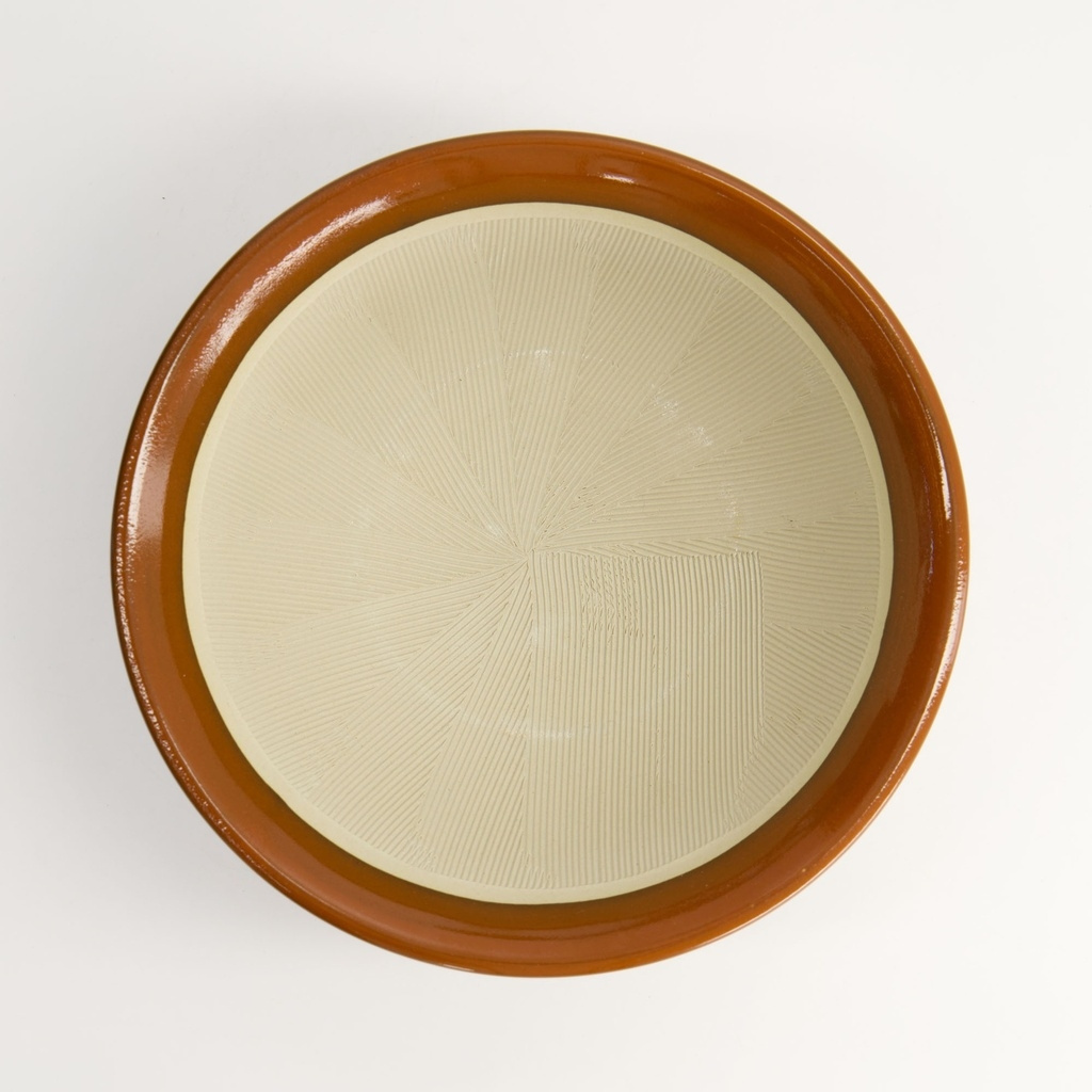 Tämä japanilainen morttelimurska, suribachi, on valmistettu lasitetusta keramiikasta, jonka sisäpuoliset urat tekevät siitä ihanteellisen siementen, pähkinöiden ja mausteiden täydelliseen jauhamiseen. Perinteinen ruskea lasite ja vaalea sisäpinta antavat sille klassisen ilmeen, joka sopii yhtä hyvin sekä ammatti- että kotikeittiöön.