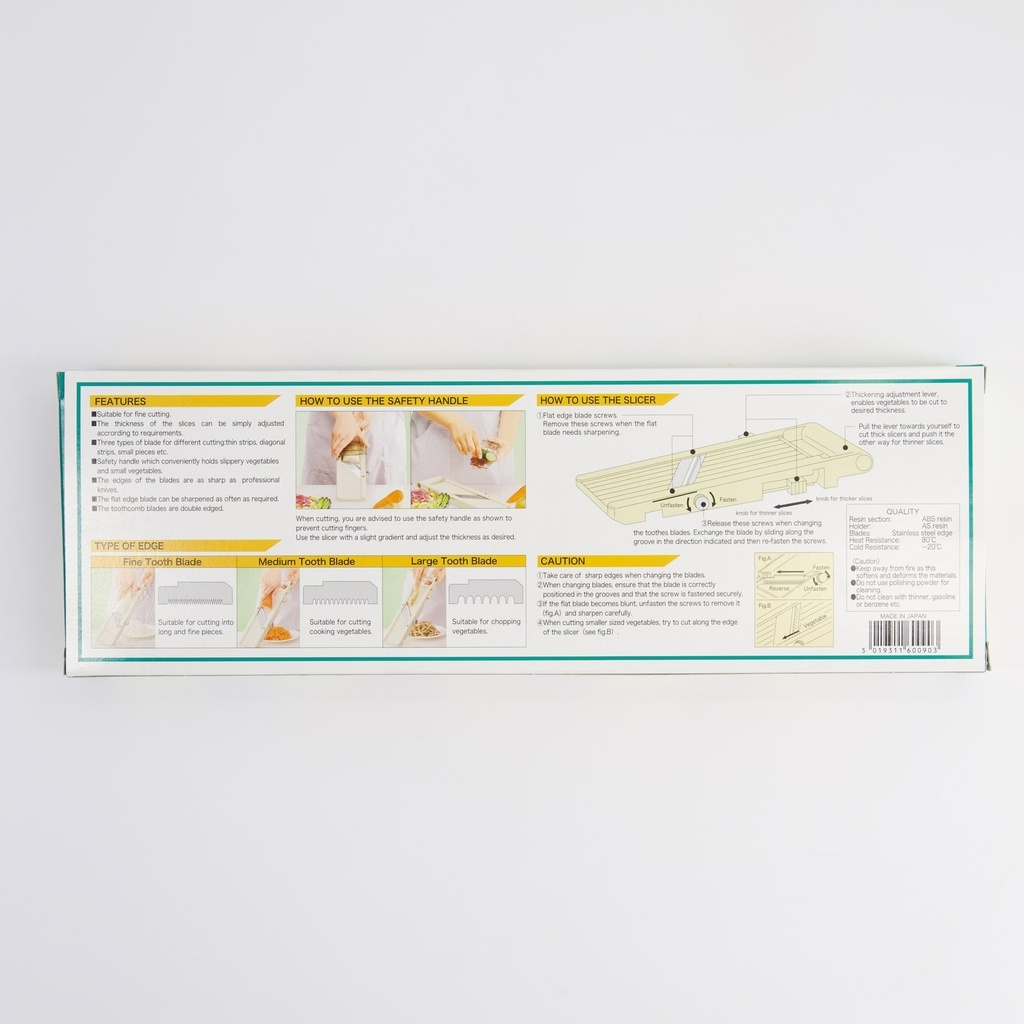 Japanilaiset mandoliinit ovat tunnettuja yksinkertaisuudestaan ja brutaalista tehokkuudestaan. Ei löysiä ruuveja, ei pyöriviä valitsimia, ei muovisia säätöjä, jotka rikkoutuvat kolmannen käyttökerran jälkeen, vain suora, partaveitsenterävä, yksiosainen teräksen terä, joka leikkaa niin puhtaasti, että ehdit tuskin reagoida, ennen kuin vihannes on siisteinä ohuina viipaleina.