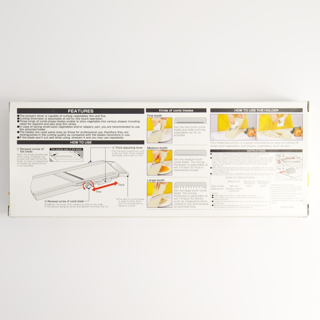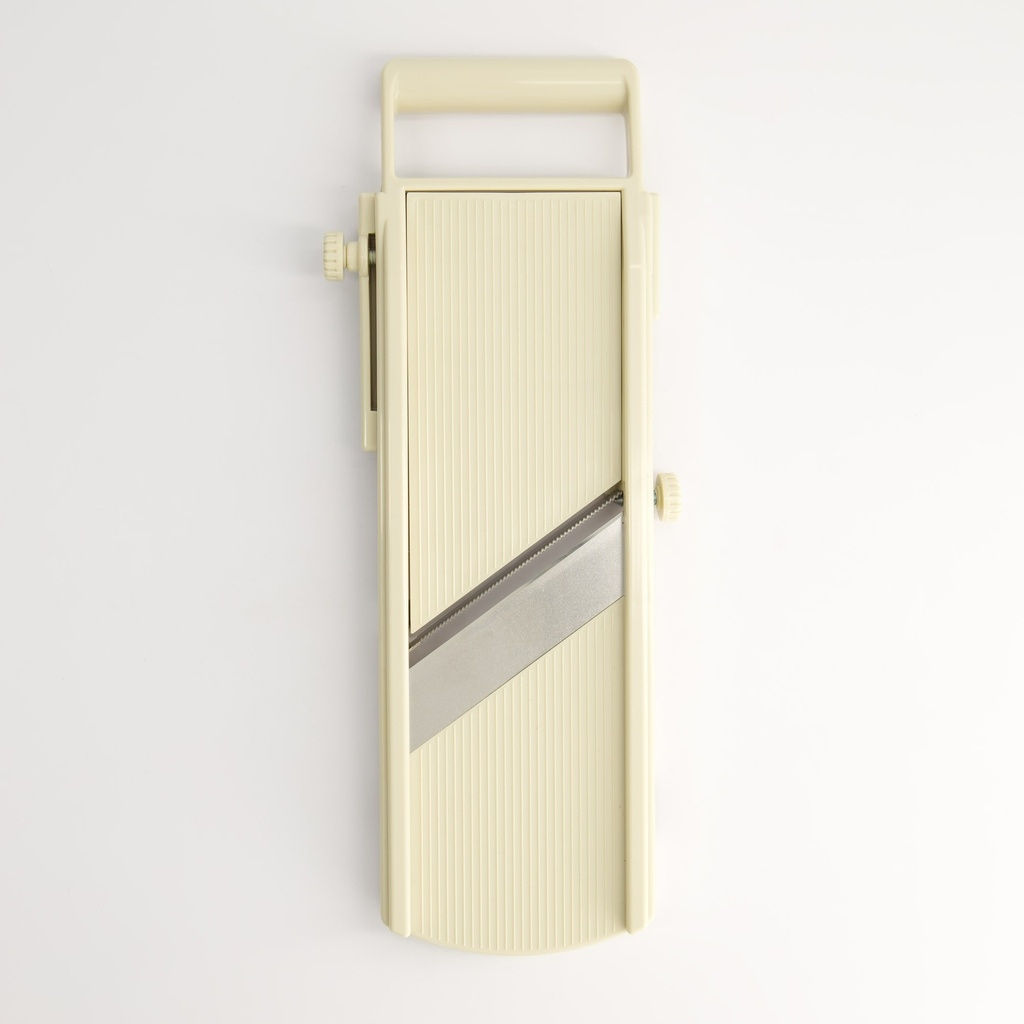 Japanilaiset mandoliinit ovat tunnettuja yksinkertaisuudestaan ja brutaalista tehokkuudestaan. Ei löysiä ruuveja, ei pyöriviä valitsimia, ei muovisia säätöjä, jotka rikkoutuvat kolmannen käyttökerran jälkeen, vain suora, partaveitsenterävä, yksiosainen teräksen terä, joka leikkaa niin puhtaasti, että ehdit tuskin reagoida, ennen kuin vihannes on siisteinä ohuina viipaleina.