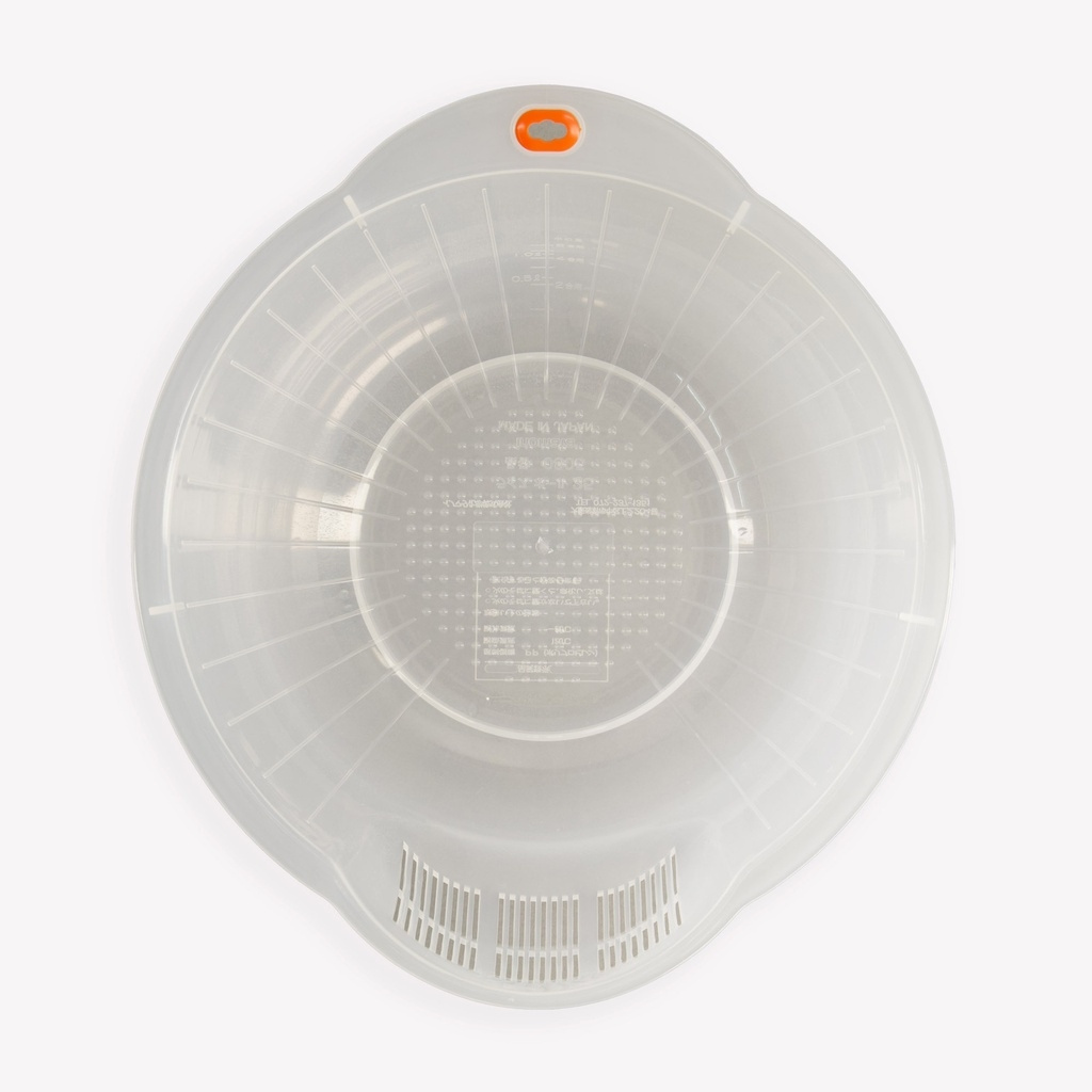Tässä japanilaisessa läpinäkyvästä muovista valmistetussa mallissa on sisäänrakennettu siivilä, jossa on hienosilmäiset valutusurat, joiden ansiosta vesi valuu nopeasti ilman, että vaarana on yhdenkin jyvän menettäminen. Muodon ansiosta riisi on helppo kierrättää vedessä - liike, joka irrottaa tärkkelyksen ja antaa kypsennyksen jälkeen puhtaan, rapean lopputuloksen.