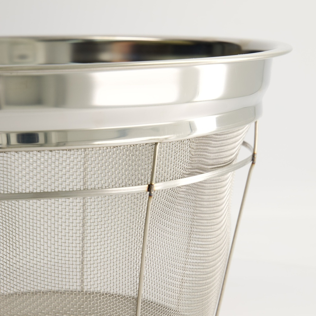 Ammattimainen japanilainen ruostumattomasta teräksestä valmistettu zaru-siivilä, jossa on syvä, kartiomainen muoto, joka sopii erinomaisesti nuudeleiden, riisin tai vihannesten huuhteluun, siivilöintiin ja nopeaan jäähdyttämiseen. Tukeva rakenne, jossa on tiiviisti hitsattu verkko, takaa nopean valuttamisen ja korkean kestävyyden myös intensiivisessä käytössä.