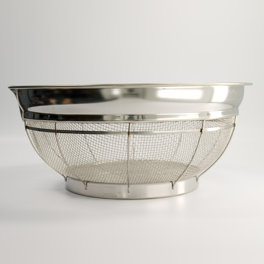 Siivilä perustuu samoihin periaatteisiin kuin perinteinen zaru, mutta siinä on moderni, teollinen kestävyys. Leveä reunus antaa vakautta, kun se asetetaan tiskialtaan päälle tai kulhoon, ja korotetun pohjan ansiosta neste pääsee virtaamaan vapaasti ilman, että ainekset joutuvat kosketuksiin pinnan kanssa.