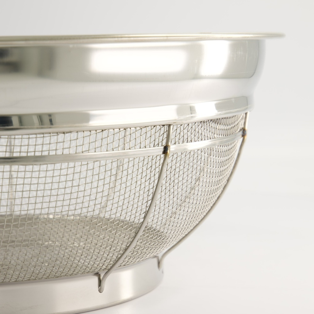 Ammattimainen japanilainen ruostumattomasta teräksestä valmistettu siivilä (zaru), joka on suunniteltu keittiön tarkkuutta varten. Matalan muodon ja tiheän lankaverkkorakenteen ansiosta vesi valuu nopeasti ilman, että se tarttuu ainesosiin, joten se on ihanteellinen nuudeleille, vihanneksille, tofulle ja riisille.