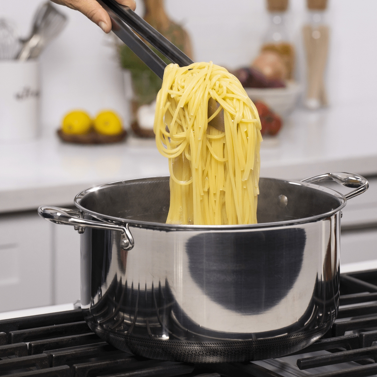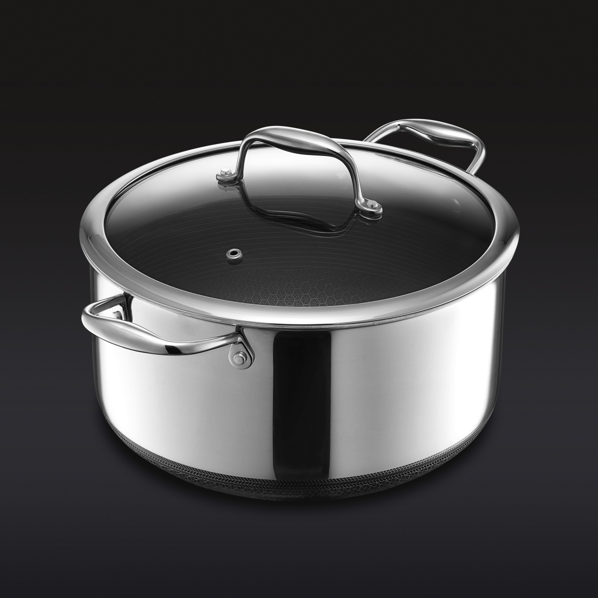 Hexclad Hybrid Casserolle with Lid 7.6 L on iso kattila vakaviin keittiötöihin - täydellinen, kun valmistat pataruokia, keittoja, hitaasti valmistettuja aterioita, suuria liharuokia tai runsaita eriä perheelle ja ystäville. Suuren tilavuutensa ansiosta voit käyttää makua, lämpöä ja tilavuutta täysin vapaasti.
