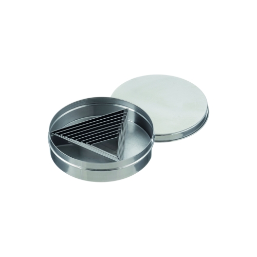 Sarja sisältää yhdeksän kolmionmuotoista muottia tasareunoilla, valmistettu 0,4 mm ruostumattomasta teräksestä, sivunpituuksilla 42 - 124 mm yhdeksässä vaiheessa. 30 mm korkeus antaa muoteille vakauden leikkaamisen paineen alla. Säilytyslaatikko mukana.