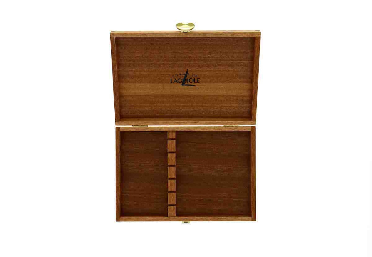 Tammesta käsin valmistettu säilytyslaatikko. Sopii täydellisesti 6 ruokaveitsen säilytykseen. Valmistettu Forge de Laguiolen valmistamia ruokaveitsiä silmällä pitäen. Toimitetaan ilman ruokailuvälineitä.