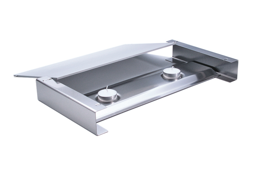 Kompakti, vakaa ja toimiva lämpölevy tarjoiluastioiden lämpimänä pitämiseen ravintolassa, kahvilassa, buffetissa tai kotikeittiössä. Se soveltuu erityisesti kastikkeiden, pienten pataruokien, kulhojen tai annosastioiden lämpimänä pitämiseen valmistuksen ja tarjoilun välillä ilman että ruoka kypsyy lisää.