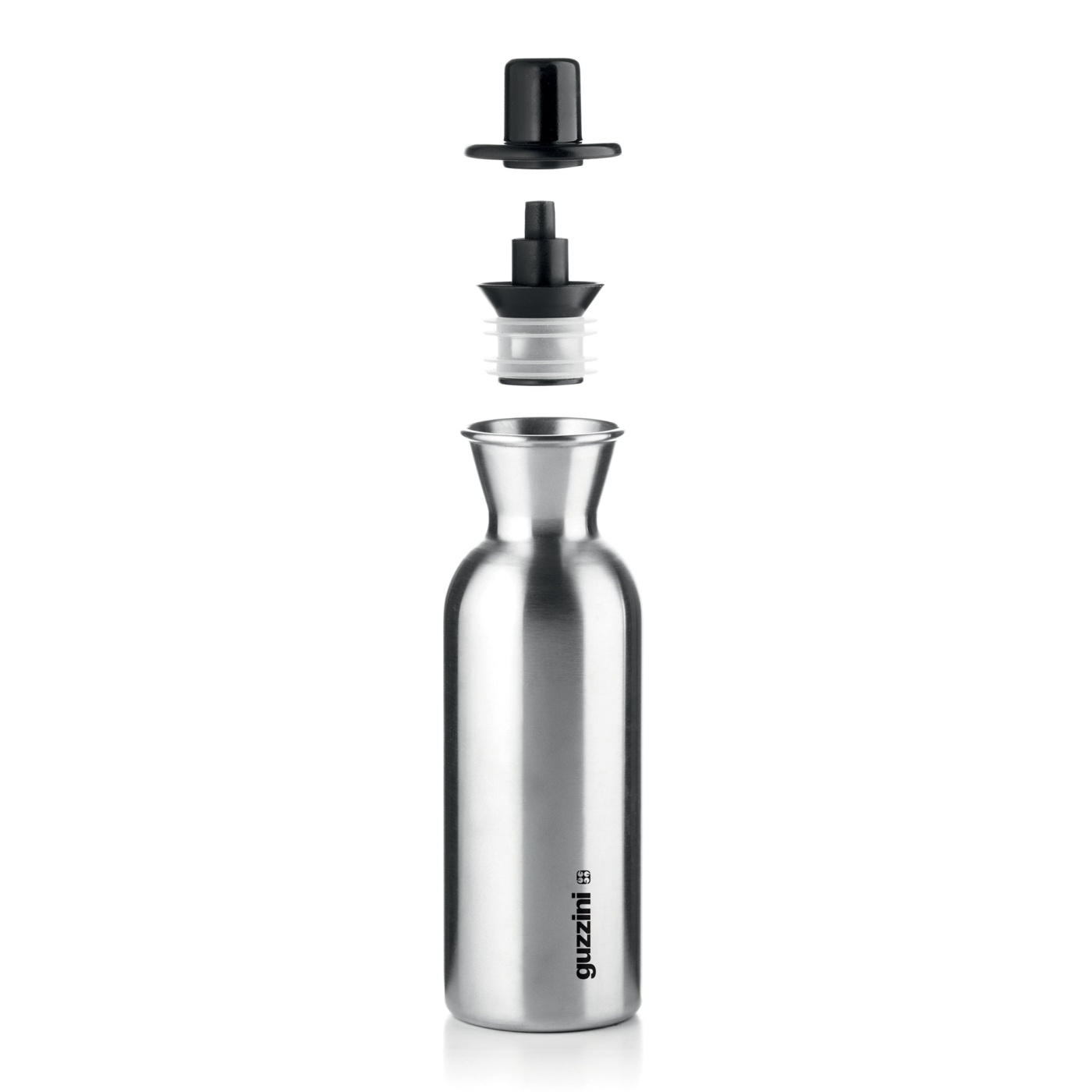 Öljy- / etikkapullo ruostumattomasta teräksestä Guzzinilta. Tyylikäs ja harkittu pullo joka tekee öljyn tai etikan annostelusta helppoa ilman sotkua ja ilman pisaroita pöydällä.