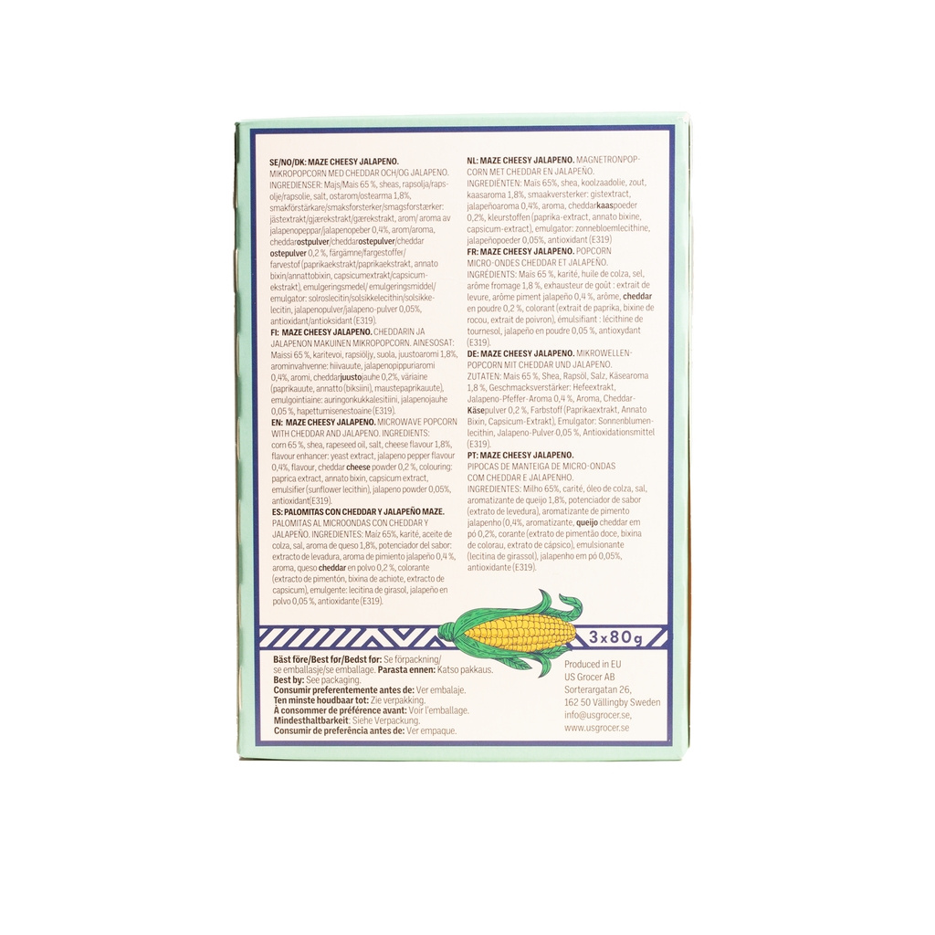Maze Popcorn on täydellinen naposteltava — rapea, maukas ja valmis elokuvahetkiin, juhliin tai arjen herkkuhetkiin. Valitsitpa sitten tulisen jalapeñomaun, klassisen voisen vaihtoehdon, täyteläisen double-butter-version tai voimakkaan cheddarjuuston, Maze Popcorn tarjoaa tasapainon suolaisuuden, intensiivisen maun ja rapeuden välillä.