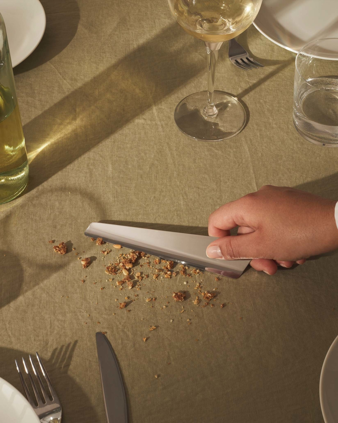 Ala Crumb Collector Alessilta on kompakti murunkerääjä, joka auttaa pitämään työtasot ja pöydät vapaina muruista ruoanlaiton, leivonnan ja kattamisen aikana, mutta erityisesti primi- ja secondi-ruokalajien välillä. Sen huolellisesti tasapainotettu muoto tekee siitä helpon ja tehokkaan käyttää yhdellä kädellä, jolloin murut ja kuiva irtoaines voidaan kerätä nopeasti ilman suuria harjoja tai rikkalapioita. Kapea aukko ja tukeva pohja helpottavat murujen ohjaamista ja varmistavat, että ne kerääntyvät ilman roiskeita. Tuote on valmistettu ruostumattomasta teräksestä ja siinä on elegantti mutta toiminnallinen muotoilu, joka tuntuu jämäkältä kädessä ja on helppo puhdistaa käytön jälkeen. Crumb Collector on tarkoitettu keittiöihin, joissa arvostetaan käytännöllisiä välineitä, jotka tehostavat työnkulkua, olipa kyse arjesta tai vaativammasta ruoanlaitosta ja leivonnasta.