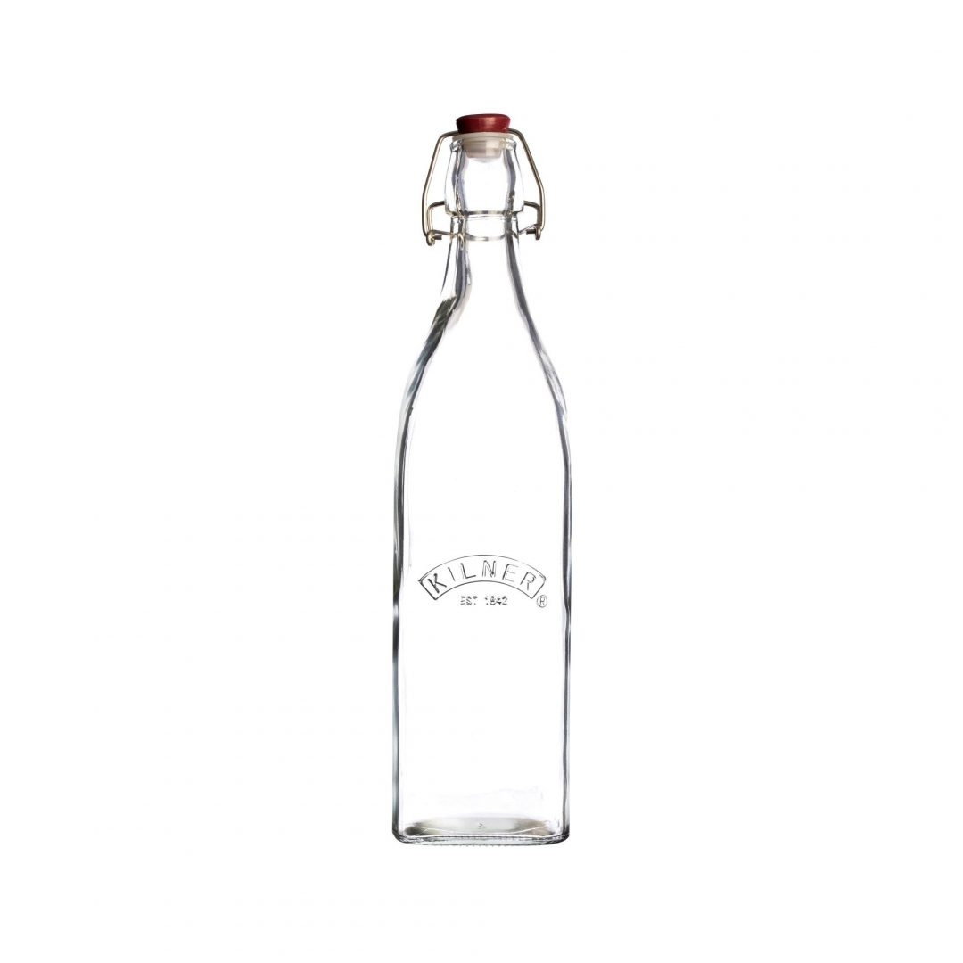 Kilner-pullo, jossa on klipsi, on suunniteltu mehun, mehun ja öljyn säilöntään.