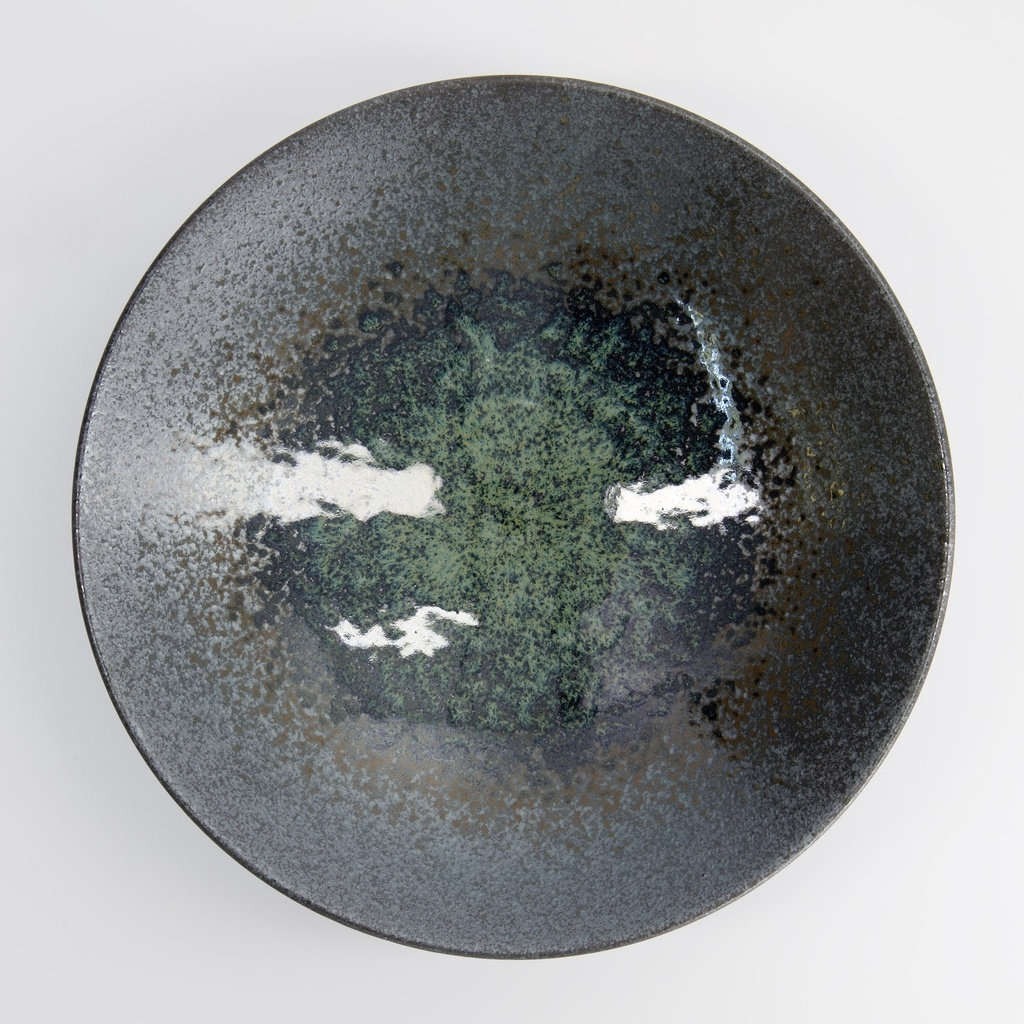 "Tämä runsas kehyskulho on esimerkki japanilaisesta Minoyaki-keramiikkaperinteestä Gifun prefektuurista, joka on yli 400 vuoden ajan ollut synonyymi käsityötaidolle, jossa toiminnallisuus ja kauneus ovat tasapainossa. Nimi Mori Aya tarkoittaa suomeksi ""metsänväriä"" ja viittaa hillityn vihreänharmaan lasitteen syvyyteen, joka muistuttaa sammaleen kastetta tai puunrunkojen välistä sumua.