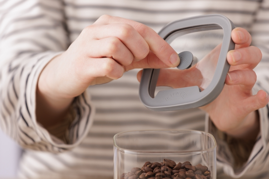 Keittiön pitäminen tyylikkäänä ja järjestyksessä on helppoa Kilnerin Fresh malliston avulla. Säilytyspurkit on valmistettu borosilikaattilasista ja niitä on saatavana useissa eri kooissa, tarjoten kaiken tarvittavan kuivatuotteiden säilyttämiseen tuoreina pidempään. Kansi on suunniteltu kevyeksi, ja sen neliskulmaiset kulmat helpottavat kaatamista, ja se on helppo painaa paikalleen ja vetää pois. Ainutlaatuinen silikoniventtiili luo vahvan tyhjiösulun, joka säilyttää maksimaalisen tuoreuden. Lasi on paras materiaali elintarvikkeiden säilytykseen ilman kemiallista liukenemista ja ilman BPA:ta. Läpinäkyvä runko mahdollistaa sisällön näkemisen yhdellä silmäyksellä, ja sekä purkissa että kannessa on tilaa omille etiketeille, mieluiten käyttäen upeaa 100% Chef merkkiteippiä. Saatavana kooissa 160 ml aina 3,5 litraan asti, ja sarja on myös pinottava.