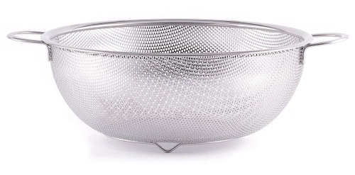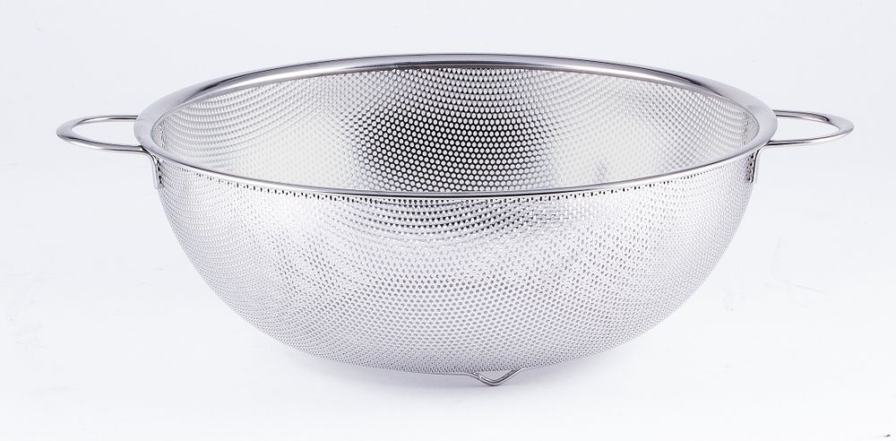 Tämä on suoraviivainen ja toimiva siivilä kahdella kahvalla ja jalalla, mikä mahdollistaa vakaan seisomisen tiskillä kun kattila tyhjennetään. Astianpesukoneturvallinen, ja reunan paksuus on noin 9 mm, mikä pitää muodon pitkänkin käytön jälkeen.