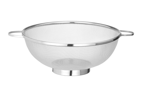 Ruostumattomasta teräksestä valmistettu lävikkö hienolla verkolla, joka kerää myös pieniä ainesosia kuten quinoaa, linssejä ja vastaavia. Kaksi kahvaa ja vakaa pohja mahdollistavat vapaan seisomisen tai pitämisen astian yllä. Astianpesukoneen kestävä.