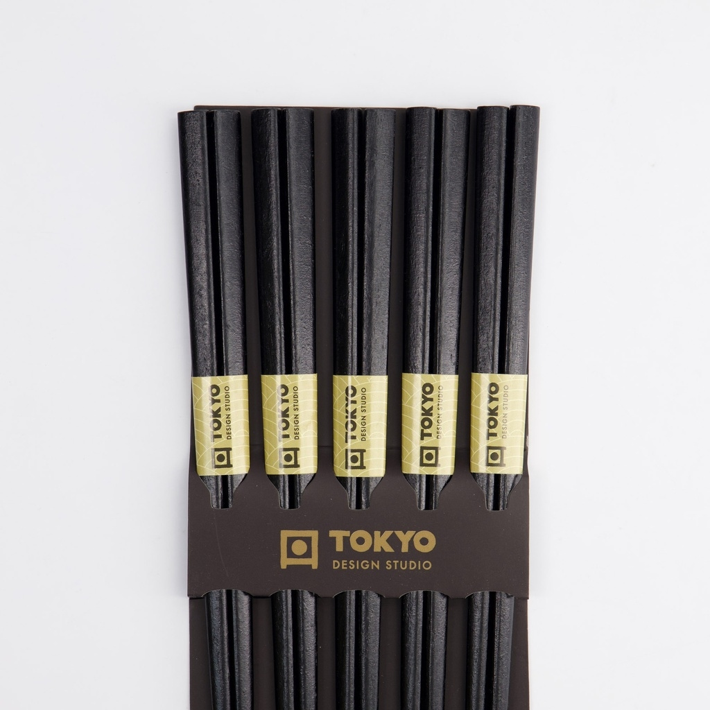 Tokyo Design Studion tyylikäs viiden parin musta puinen syömäpuikkosarja, jossa on mattapintainen pinta, joka antaa luonnollisen otteen ja tuntuman. Pinta on hieman karhennettu, mikä tekee syömäpuikoista mukavat kädessä pidettäviä ja antaa lisäkontrollia riisiä, nuudeleita ja pieniä ruokia poimittaessa.