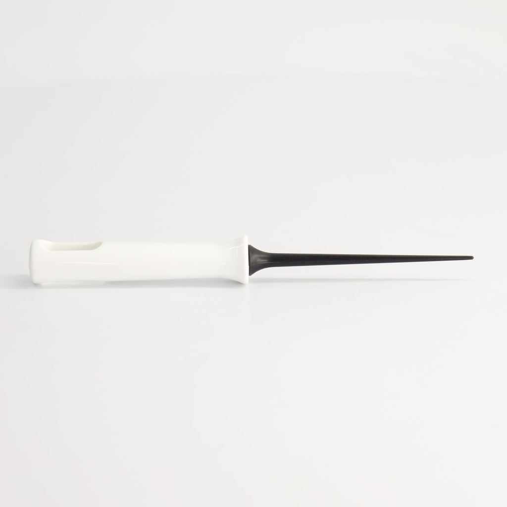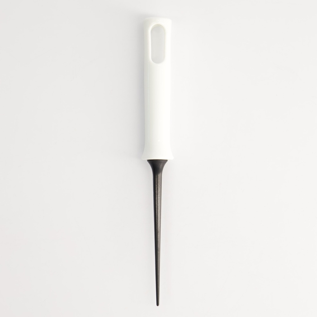 Tämä malli on valmistettu kuumuutta kestävästä nailonista, joten se on hellävarainen tarttumattomalla pinnoitteella päällystetyille muoteille. Kärki on kapea ja jäykkä, jotta se tarttuu helposti taikinan reunaa pitkin, kun taas muovinen kahva antaa turvallisen otteen myös silloin, kun työskentelet nopeasti kuuman pannun päällä.