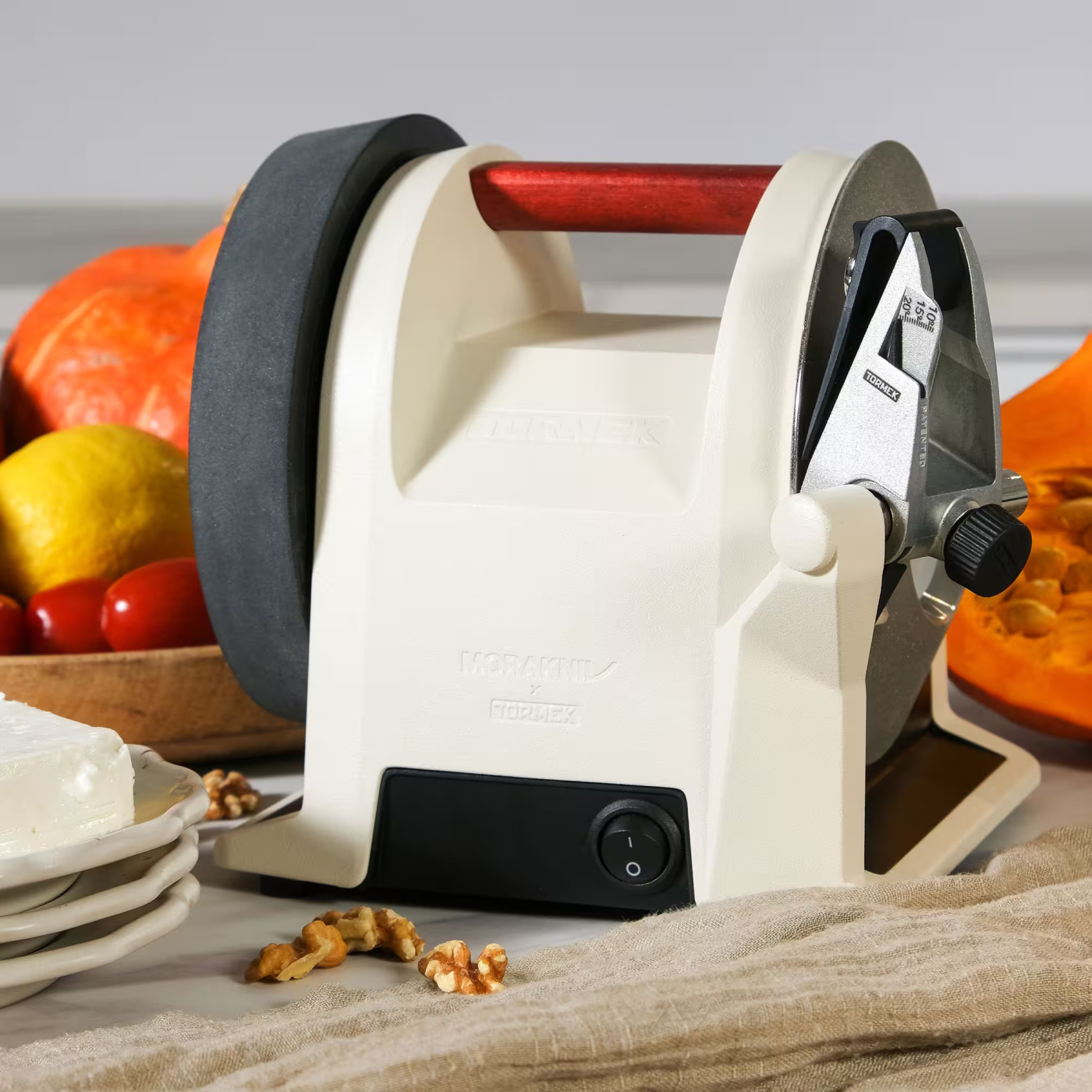 Tormek T-1 Morakniv 1891 on kunnianosoitus ruotsalaiselle käsityö- ja muotoiluperinteelle. Kahva on valmistettu ruotsalaisesta koivusta – samasta materiaalista kuin Moraknivin klassiset veitset – ja viimeistelty ikoniseen syvänpunaiseen sävyyn Moraknivin salaisen reseptin mukaan. Massiivinen sinkkirunko on maalattu Linen White -sävyyn ja leimattu molempien brändien logoilla yhteistyön pysyväksi merkiksi.