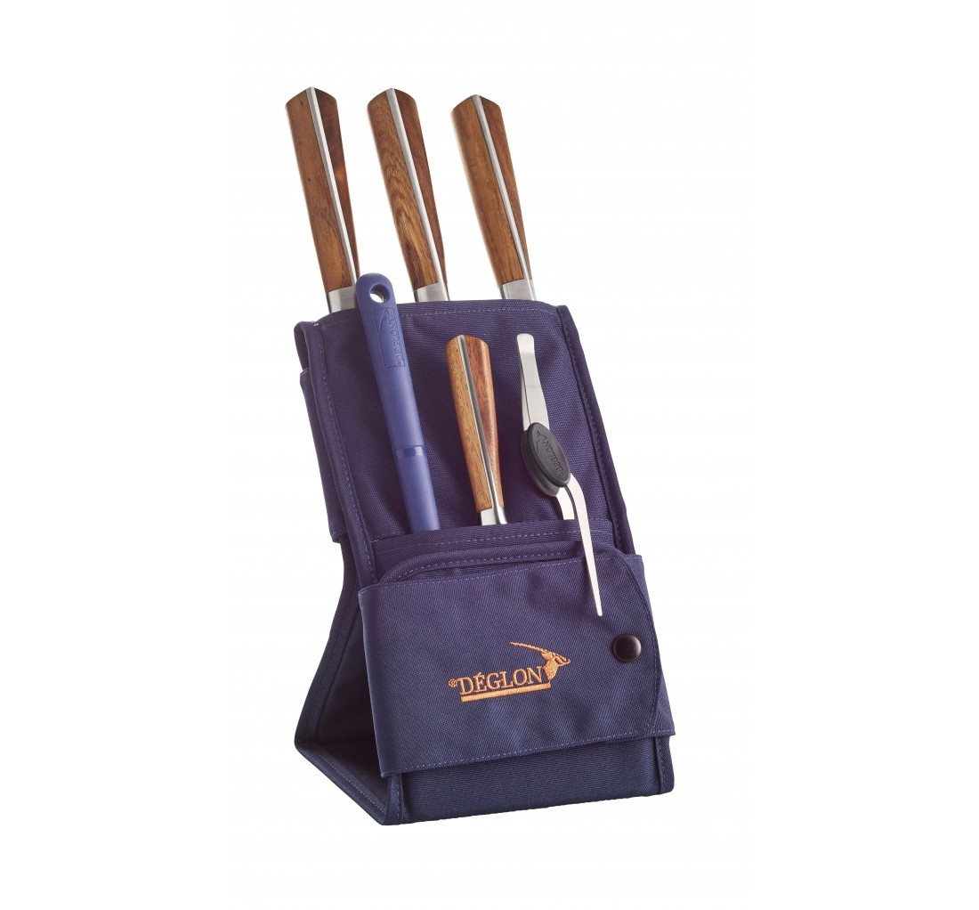 Liikkuville kokeille suunniteltu veitsirulla. Tämä veitsirullan ja työaseman tai veitsitukin yhdistelmä on joustava säilytysjärjestelmä, joka yhdistää turvallisen veitsien kuljetuksen ja nopean käytettävyyden työn aikana. Jäykkä runkorakenne mahdollistaa telineen avaamisen ja käyttämisen vakaana veitsitukkina työtasolla, samalla kun veitset pysyvät suojattuina leikkuunkestävästä kankaasta valmistetuissa pehmustetuissa taskuissa. Telineeseen mahtuu enintään kahdeksan veistä, ja se soveltuu sekä suurille terille aina 28 cm asti että pienemmille veitsille 15 cm asti. Kestävä 600D PVC -ulkokangas on helppo puhdistaa ja sen voi pestä jopa pesukoneessa käsinpesuohjelmalla, mikä tekee siitä erinomaisen ammattikäyttöön. Käytännöllinen ratkaisu kokeille, jotka työskentelevät eri paikoissa ja haluavat pitää veitsensä järjestyksessä, turvassa ja aina käden ulottuvilla. Jos et halua käyttää sitä pystyasennossa, sen voi myös ripustaa integroidun koukun avulla helppoa käyttöä varten. Suljettuna mitat ovat 44 x 16 x 2 cm, avattuna 16 x 16 x 27 cm. Toimitetaan ilman veitsiä ja työkaluja, jotta voit täydentää sen omalla valikoimallasi.
